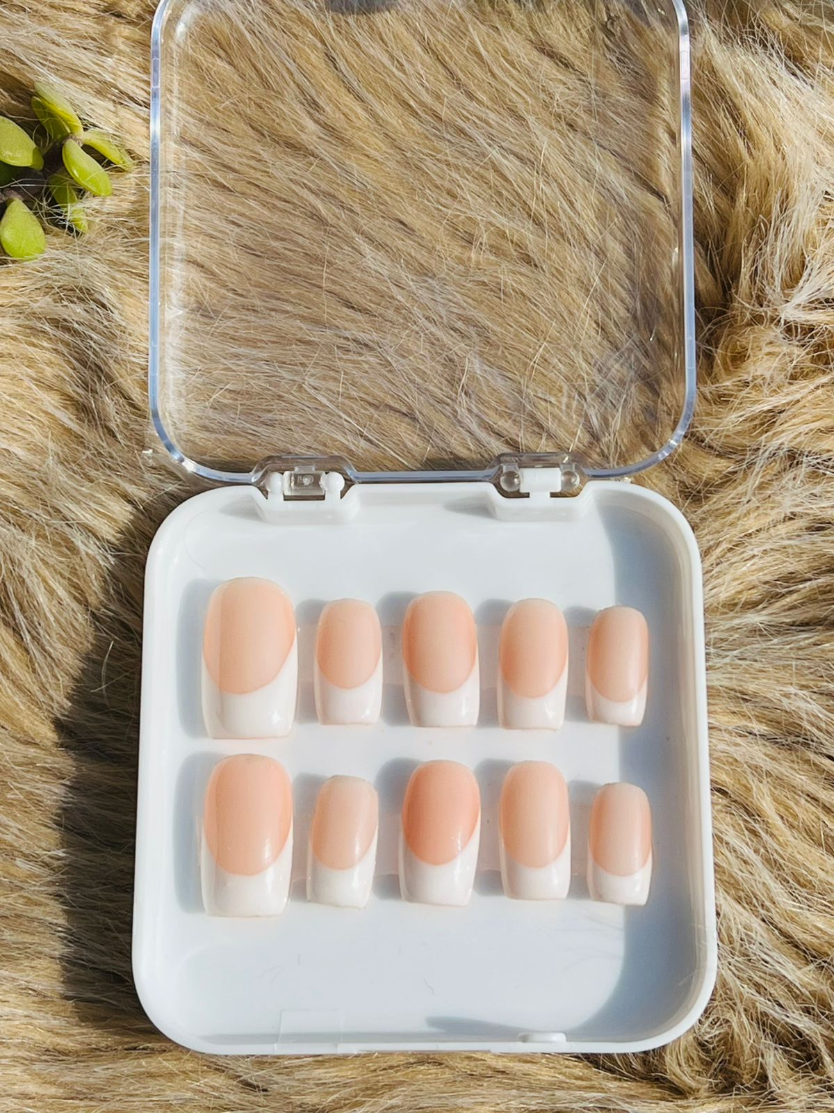 A soft peach nude nail set with a clean, minimal finish, perfect for everyday wear and effortless elegance. Designed for a natural, polished look, these nails complement all outfits and occasions with a smooth, glossy, salon-perfect touch.